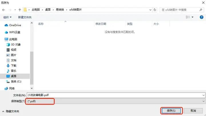然后软件就会自动将文件转换为PDF格式,为转换后的PDF文件设置名称和保存位置,完成后点击【保存】即可。