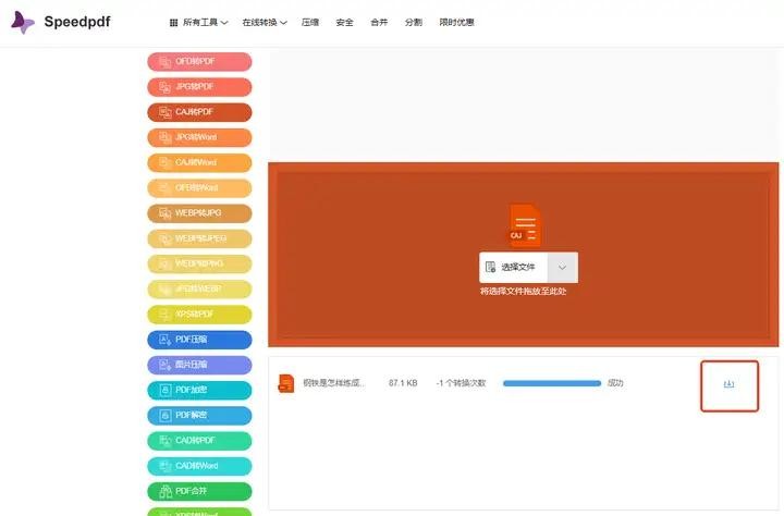一个在线PDF转换网站,支持将CAJ文件转换为PDF格式,网站的操作简便快捷,很快就能将上传的caj文件转换为PDF格式,方便阅读与分享,一天只能转一个文件。