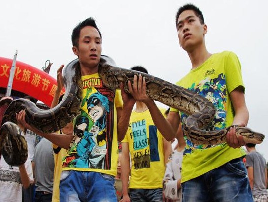 闽人崇蛇的表现形式很多。古代有"翦发文身",以像龙子或鳞虫,祈求在水中避龙蛇之害。世代在水中生活的(上疋下旦)人,在船上供木龙(木雕蛇像)祈祷,还在岸上建蛇神庙,"画蛇以祭,自云龙种"。与此类似,福建各地都建有蛇王宫、庙以崇祀蛇神,保留至今的有南平西芹、长汀罗汉岭、闽侯洋里等处的蛇王宫。福清、莆田等地的蛇王庙称"青公庙"。南平樟湖板及其附近山村的蛇王庙,至今每年七月初七还要举行祀蛇赛神的庆典。平和县三坪寺一带村民,以往有饲蛇以看家守户的习俗,至今与蛇共寝也恬不为怪。在三坪寺古庙中供奉的"侍者公"即为蛇神。至今,闽、浙和台湾等地,仍流传不少蛇与人结合的神话故事。如蛇郎君、白娘子等。类似闽族人的崇蛇现象在台湾也有,由此也可推知闽台人民在古代的交往及其种族渊源关系。