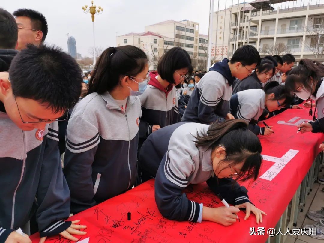 庆阳六中学子将以舍我其谁的勇气为帆,勇立潮头;以势必凯旋的信念为翼,扶摇万里。一百天的汗水挥洒将饱满六月收获的果实;一百天的拼搏苦战将嘹亮六月归航的凯歌。梦想已经张开了翅膀,雄心与智慧在此刻闪光。乘风盈壮志,破浪试锋芒;六月凌绝顶,高考必辉煌!