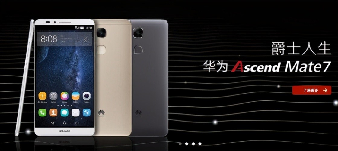 Mate 2发布仅8个月后,Mate 7横空出世,采用 6 英寸、1080P 屏幕, 麒麟925处理器,屏占比达 83%,加入背部按压式指纹识别,3000元以上的定价标志着华为开始向高端市场迈进。当然,很多人记住Mate 7可能还是因为那句著名的宣传语:爵士人生。