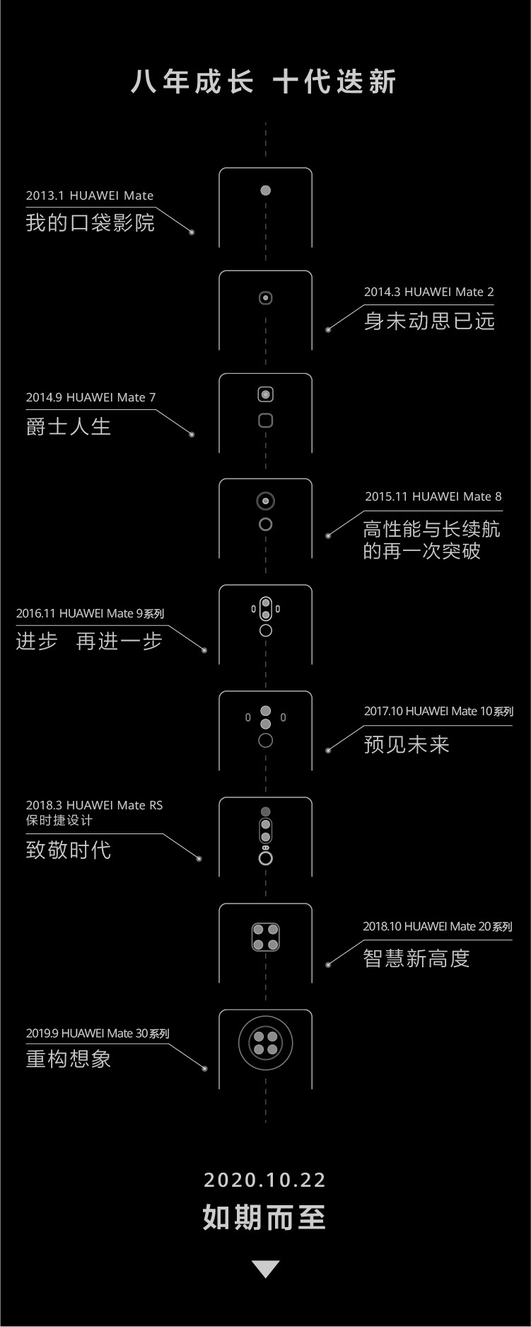 短短八年间,Mate系列已经历九代升级,华为官方发布了一则名为“八年十代”的视频,我们不妨也借此机会,回顾一下历代Mate,看看其中诞生了多少经典机型。
