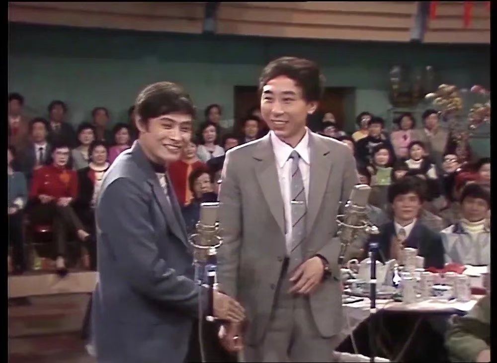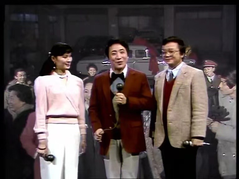 赵忠祥、姜昆、刘晓庆是老面孔。王刚就是后来家喻户晓的“和珅和大人”,当时是中国广播电视台播音员,而且和大人还是在春晚上第一个用英语报幕的主持人。方舒刚刚成为百花奖影后,便跨界主持了春晚。顾永菲也是知名演员。