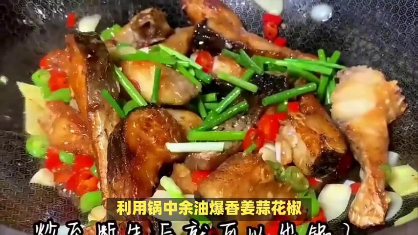 ·加入适量清水,水量刚好没过鱼块为宜,调入生抽、老抽调色,少许白糖提鲜。大火烧开后转小火慢炖,期间可轻轻翻动鱼块,使其均匀受热。待汤汁逐渐浓稠,撒上葱段,大火收汁至汤汁微微粘稠即可出锅。
