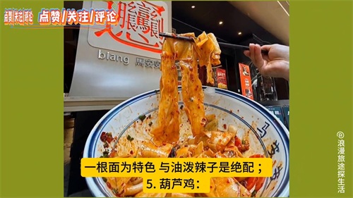 ·4.biangbiang面:手工拉成的长宽厚面条,一根面为特色,与油泼辣子是绝配。