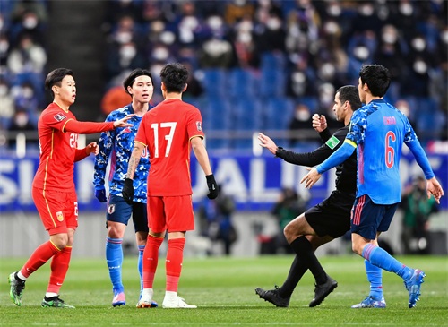 当日,在日本埼玉进行的2022年卡塔尔世界杯预选赛亚洲区12强赛B组第七轮比赛中,中国队客场以0比2负于日本队。