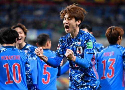 1月27日,日本队球员大迫勇也在比赛中庆祝进球。 新华社记者 张笑宇 摄
