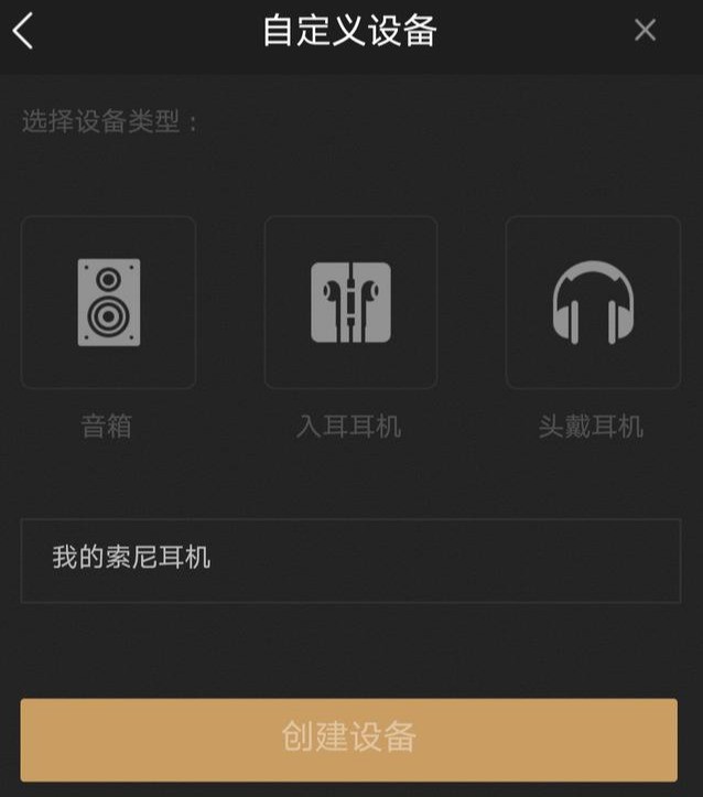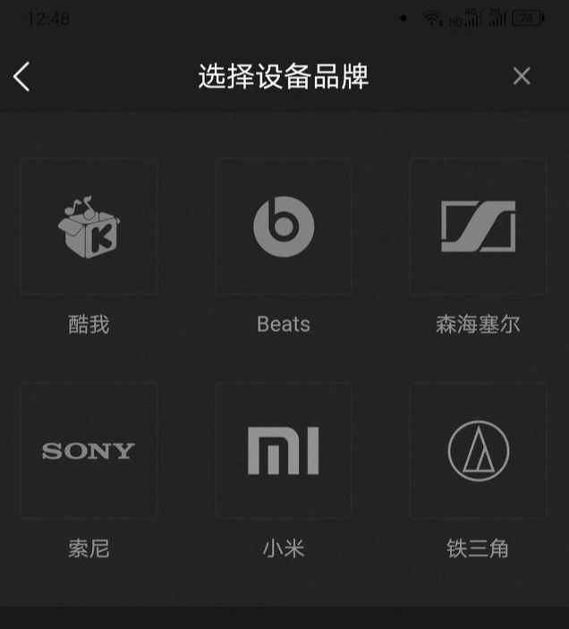 选择品牌,选择型号,看了一下,居然没有这款耳机的型号(看来这款耳机受众面不广,不受该App待见),只能在自定义添加中添加一下。