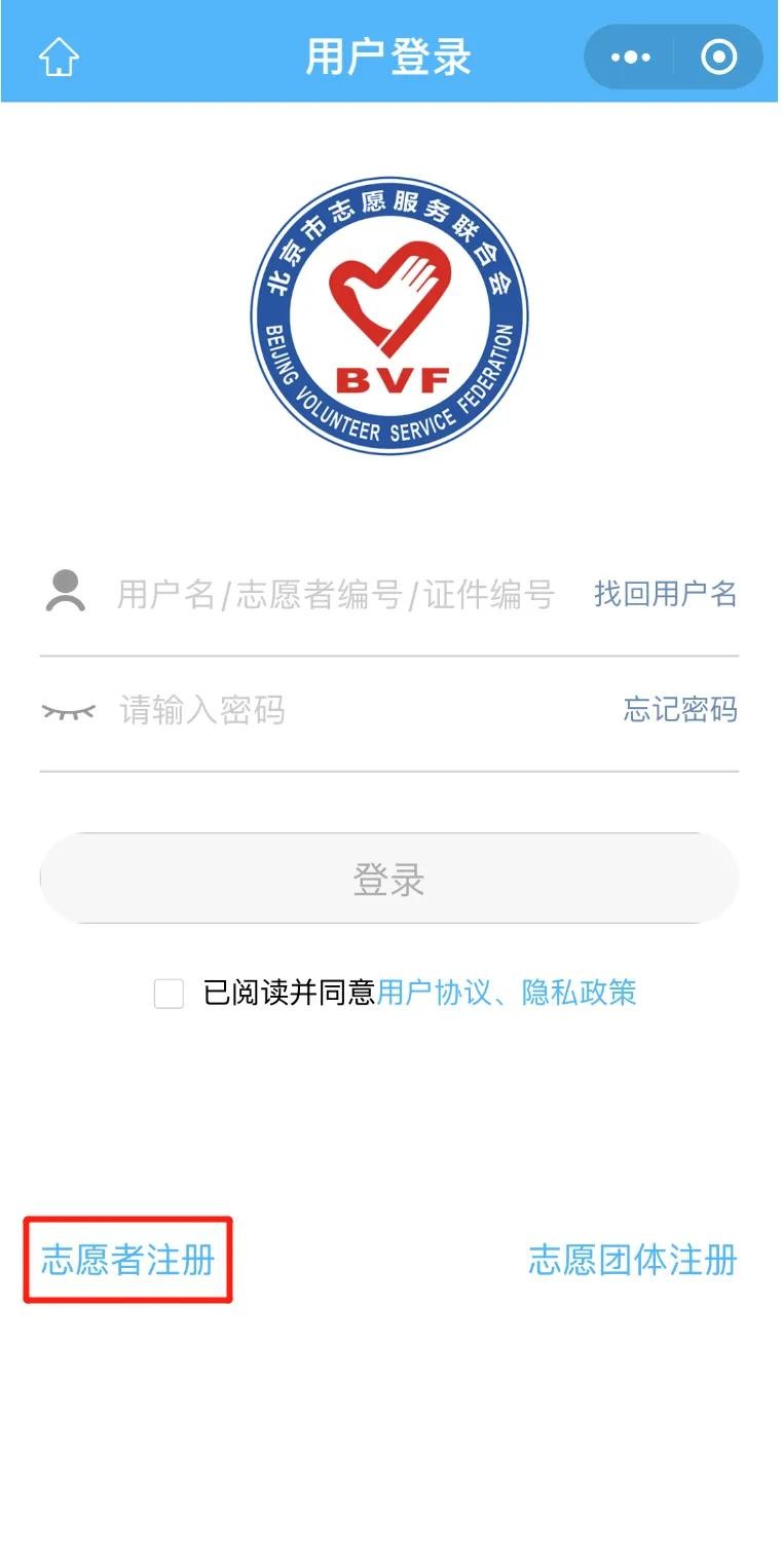 第二步:在左下角找到【志愿者注册】,点击进入注册页面。