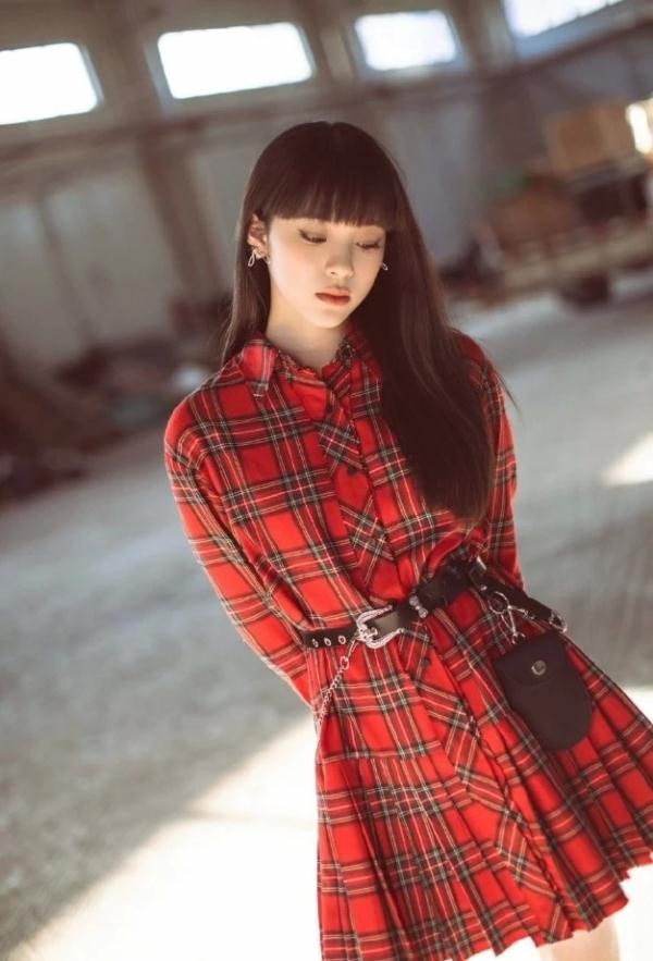 娜比剪“乖妹刘海”拍大片,红色的裙子颜色热烈,加入了绿色的细小格纹,不会过于鲜亮,也多了几分学院风,用黑色的皮带收紧腰间,就显得很有炫酷感,越看越有气质!