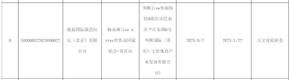 杨丞琳重庆演唱会审批文件通过