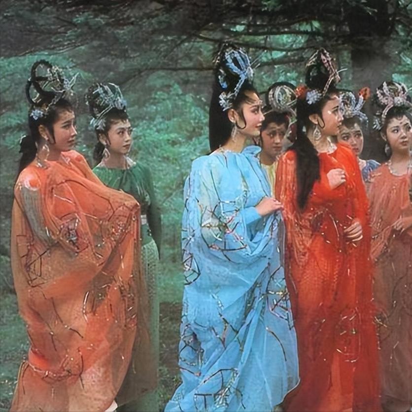 师徒三人行到巴东,忽然出现了十二个漂亮的神女,她们微笑着在山前相迎。