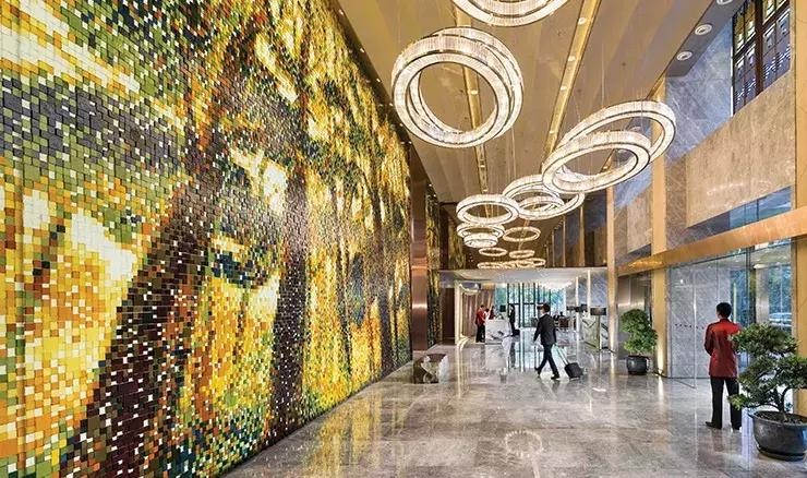 酒店的大堂让人震惊和敬畏:卡雷拉大理石的海洋、青铜的河流、10米高的玉石墙壁,以及每件价值100万英镑的当代中国艺术品。在其他地方,施华洛世奇水晶从天花板上滴落下来,厚厚的中国地毯铺在走廊上,整面墙都贴着LED显示屏。这些引人注目的内部装饰可能并不适合所有人的口味,但它们确实让人们对中国的暴发户有了不同寻常的了解,了解他们如何看待自己以及自己在世界上的地位。