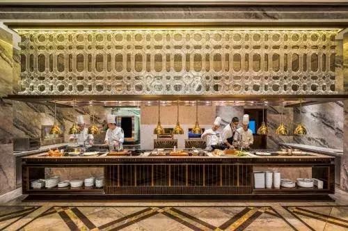 酒店对193间客房进行了两种不同的处理:“时尚,高能量”,这意味着彩色玻璃、几何吊灯和旋转大理石的盖茨比式混合;“高贵、豪华、尊贵”,紫禁城与凡尔赛宫的氛围交相辉映,手绘的丝绸屏风、云纹地毯和大量的镀金和水晶。