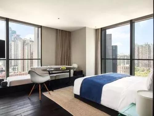 相对于所有的公共空间的社会喧嚣,房间显然是低调的,舒适是这里优先考虑的。中国电影中忧郁的黑白摄影和人造皮草为原本简单的淡橡木和白色大理石调色板增添了几分生气。自动窗帘能让你看到高层城市的景色(如果可以的话,可以预订一间面朝外滩的房间)。定制香味的Le Labo沐浴产品和Anichini床上的亚麻增加了奢侈的因素。
