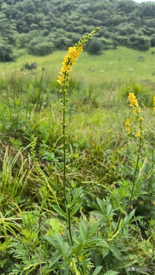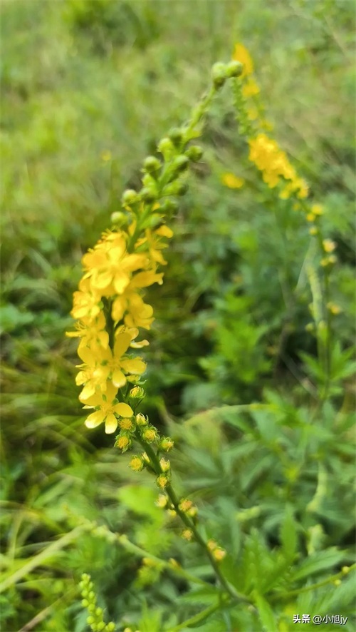 龙芽草,别名:仙鹤草、瓜香草,蔷薇科龙芽草属。生于荒地、山坡、路旁、草地。中国大部分地区均有分布。