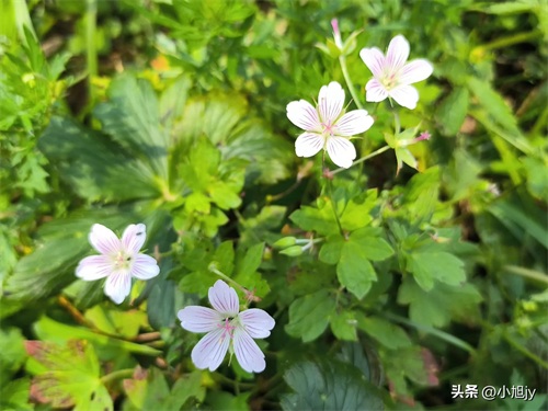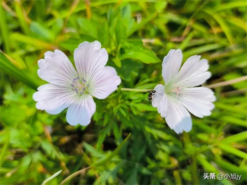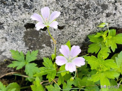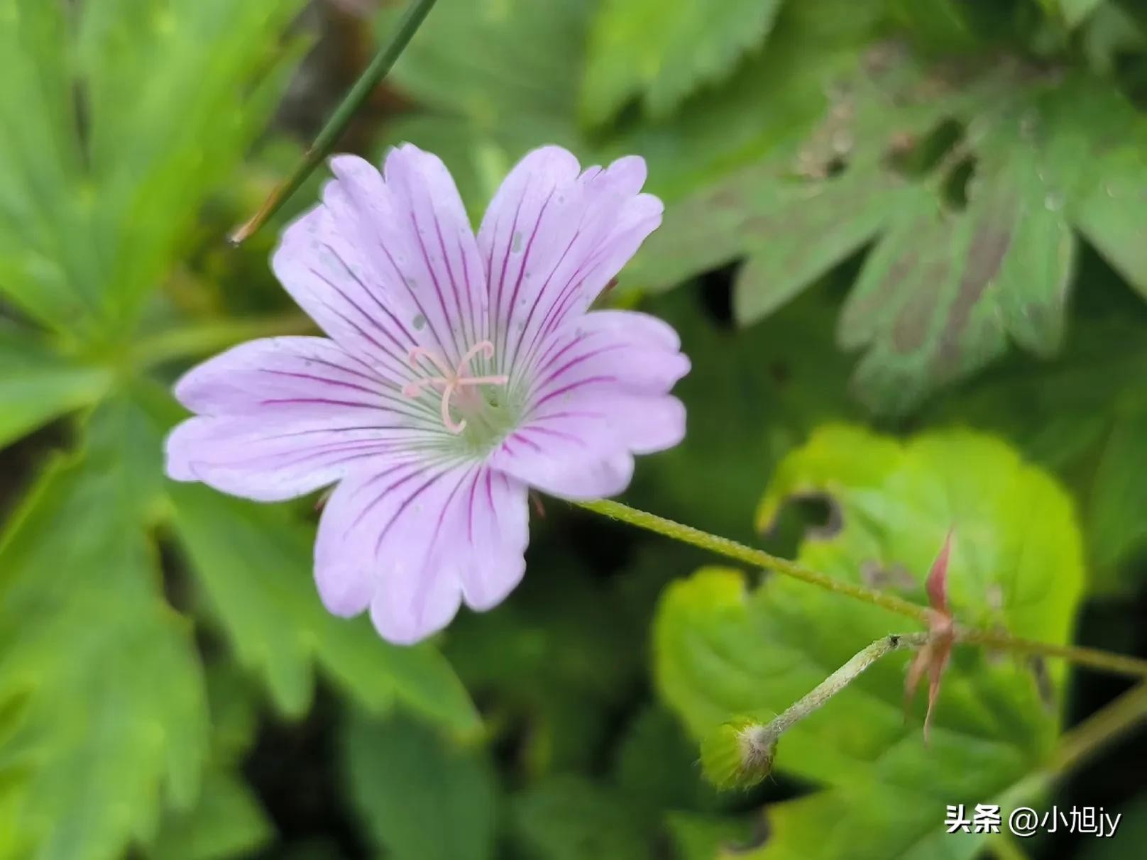 灰背老鹤草,牻牛儿苗科老鹳草属,多年生草本。花瓣淡紫红色,具深紫色脉纹,宽倒卵形。花期7-8月,果期8-9月。