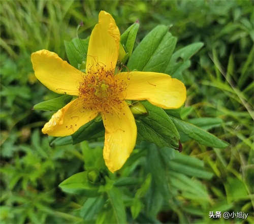 黄海棠,别名:牛心菜、大叶金丝桃,金丝桃科金丝桃属,多年生草本。茎直立;花瓣金黄色,花药金黄色。花期7-8月,果期8-9月。