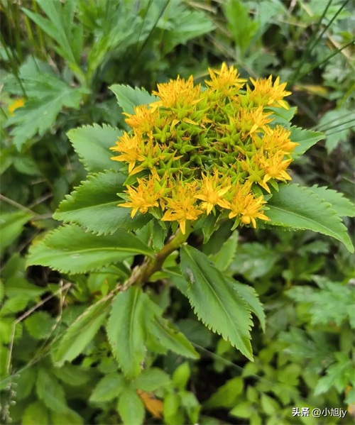 费菜,别名:景天三七、黄菜、四季还阳,景天科费菜属,多年生草本,高20~50cm。叶片广卵形至狭倒披针形。聚伞花序顶生,分枝平展,花密生,黄色。有活血、止血、宁心、利湿、消肿、解毒的功效。