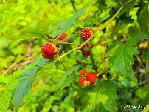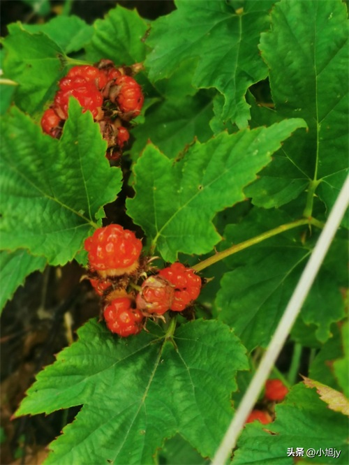 牛叠肚和覆盆子很相似,它们同为悬钩子属,我区别它们主要看叶子:牛叠肚的叶子略呈枫叶状,而覆盆子的叶子不是。