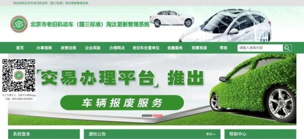 北京市老旧机动车淘汰更新管理系统/记者截图