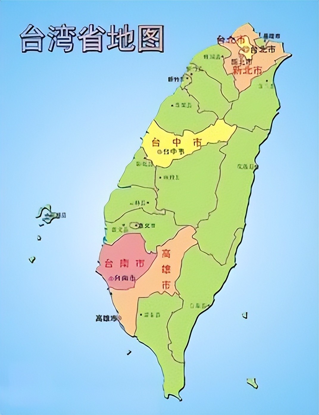 本岛西南有澎湖列岛,东北有钓鱼列岛,周围尚有彭佳屿、棉花屿、花瓶屿、基隆岛、和平岛、龟山岛、绿岛、兰屿、七星岩、琉球屿等,连本岛共86座岛屿。