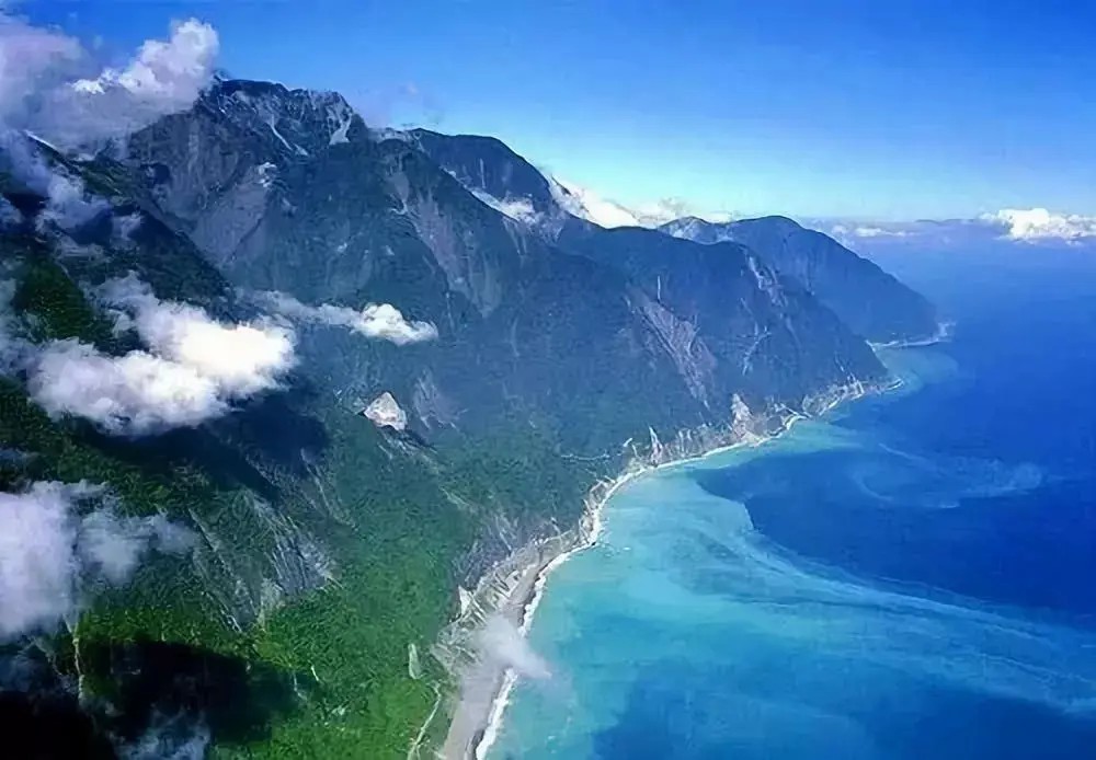 海岸较为平直,岸线长1139千米,东部从三貂角至旭海为断层海岸,雪山山脉北端、中央山脉北端和南端,台东山脉直逼岸边,峻峭耸立,海底急剧倾斜,离岸数千米,水深即达一二千米;除北部有较大的宜兰平原外,仅在花莲、台东等地有小块冲积平原。北部从三貂角至淡水河口为峡湾海岸,多岬角湾澳。西部从淡水河口至枋寮为沙质海岸,岸线平直,沙滩绵长,较多地段便于登陆;滩涂宽广,多沙洲、湖,尤以大肚溪口至曾文溪口一带海埔新生地增长迅速。南部从枋寮至旭海为珊瑚礁海岸,多陡峭崖岸,前有裙礁,南端鹅銮鼻与猫鼻头间有较低平的南湾。