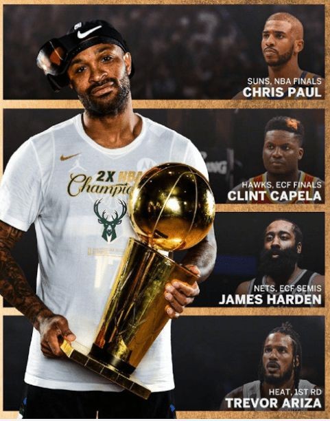 就这样,雄鹿不那么令人信服的越过了篮网,之后又击败了老鹰和太阳,夺得了今年的总冠军。36岁的塔克,一路干倒了曾经火箭队的其他四位首发,站在了最高领奖台上。
