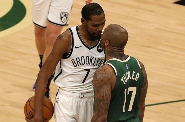 毕竟对于像杜兰特这种无法防守的超级得分手,只要能让他们的出手感觉有点难受,就已经是出色的防守了,而这正是塔克追求的。他不想让杜兰特轻易接球,也不会让他舒舒服服的接球,无论在篮下还是三分线外,他都会尽量紧贴对手,让杜兰特费尽心思才能获得得分的机会。“通过观察,我总结出了他的弱点,”塔克说,“我知道他在什么情况下会犹豫,喜欢在什么情况下果断出手。他是世界上最好的得分手,我无法阻止他,但我会尽可能增大他得分的难度,让他在命中率低的地方出手。”是的,虽然篮网七号依然可以砍下接近五十分,但是塔克对其的“死缠烂打”,也让杜兰特体力槽接近清零。