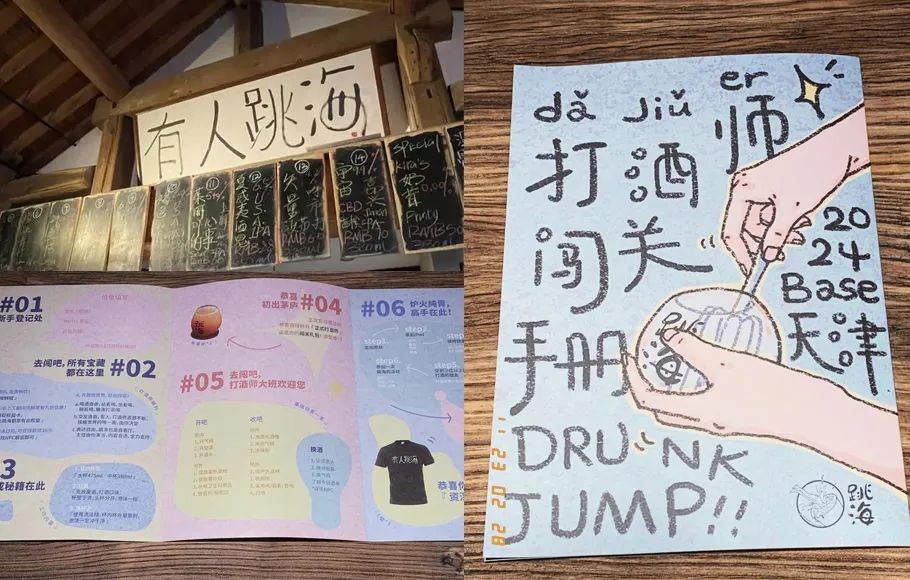 如何招募呢?比如随处摆放的的“打酒师的闯关手册”;比如酒桌上会放着「跳海日历」,上面印着二维码「扫一扫,成为跳海打酒师」。如今,全国打酒师报名人数已经过万,甚至上海北京等地排队等待上岗。
