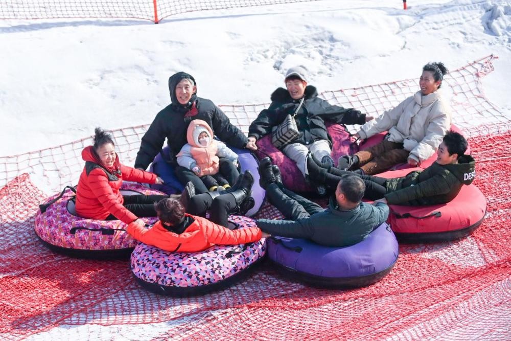 2021年2月15日,在吉林省吉林市万科松花湖滑雪场,游客玩雪圈。新华社记者 颜麟蕴 摄