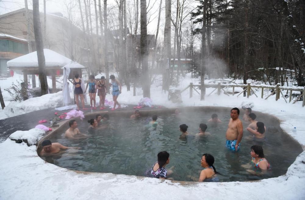 2016年1月16日,游客在吉林长白山景区体验温泉浴。新华社记者 许畅 摄