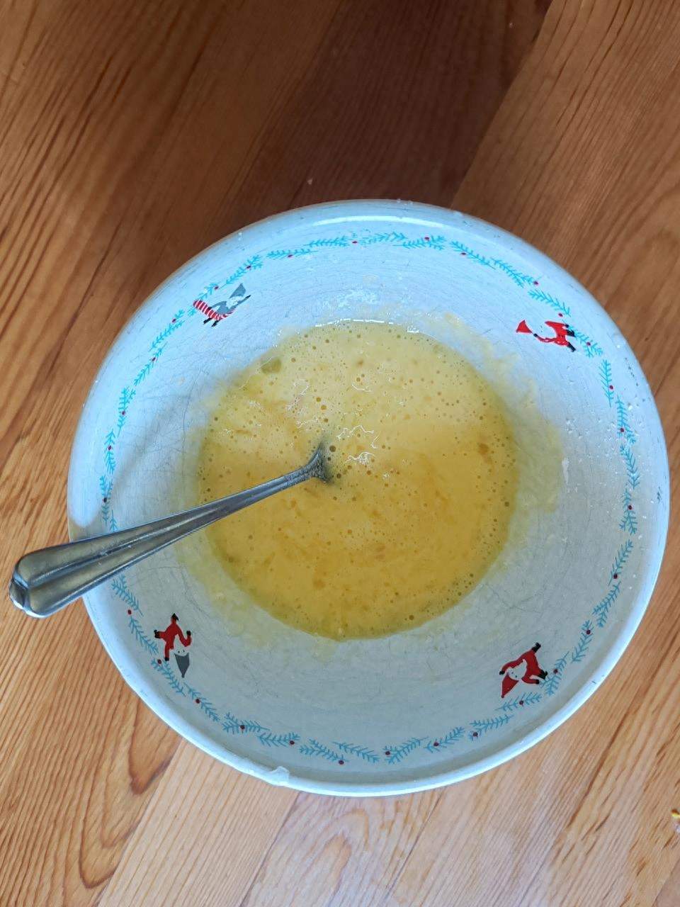 3将鸡蛋打散,倒入一点点食盐和椒盐粉,淀粉,搅拌均匀备用。
