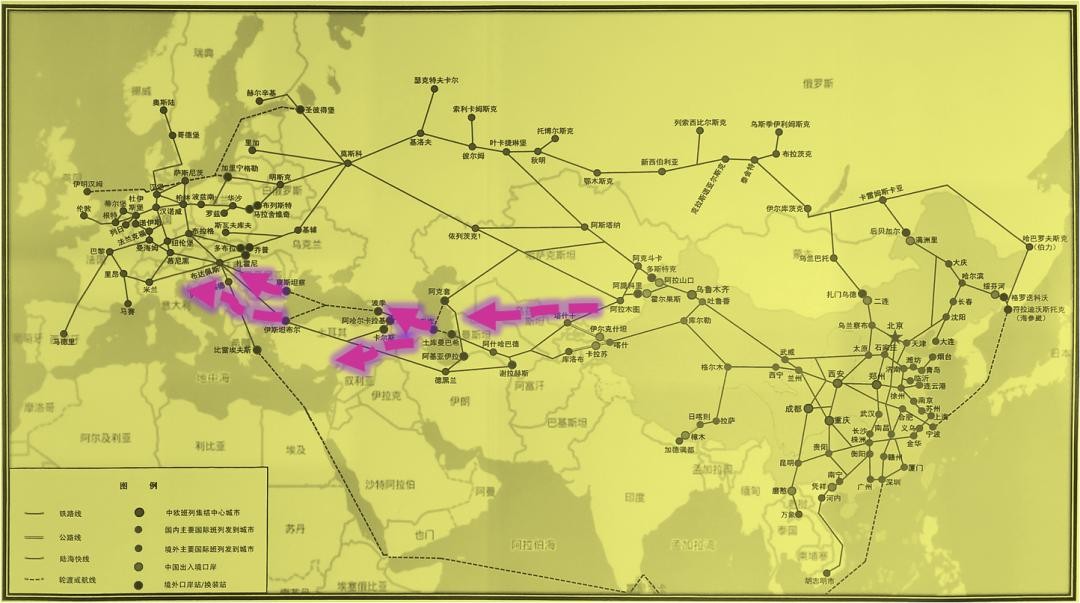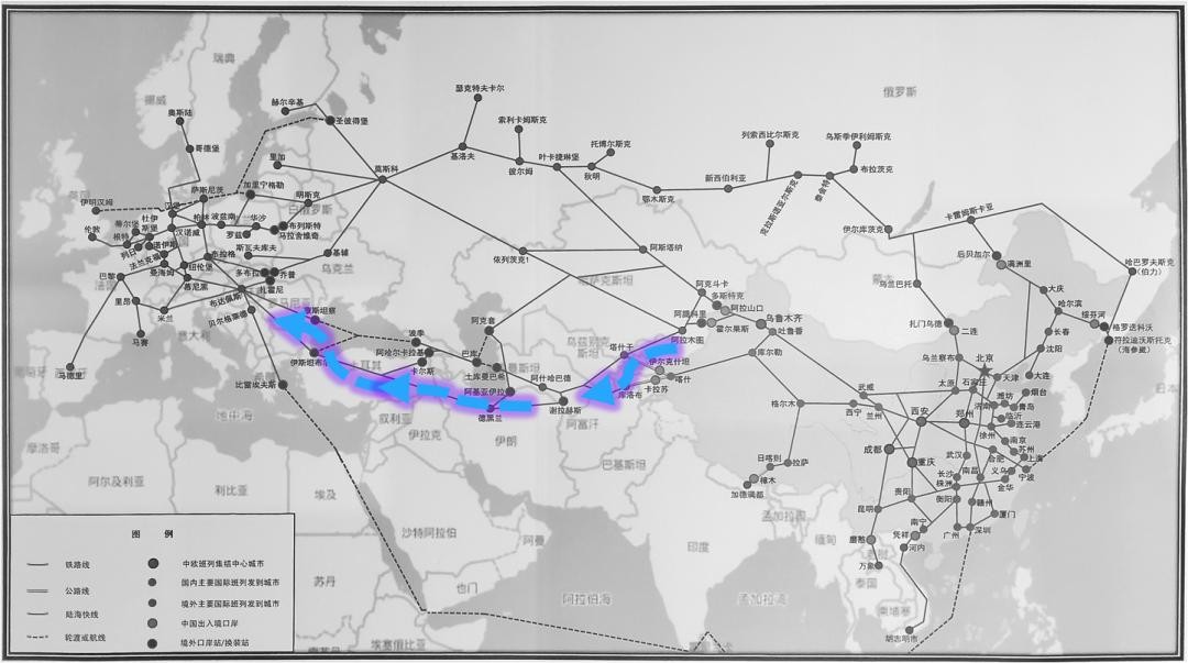 中国-哈萨克斯坦-伊朗-土耳其-欧洲