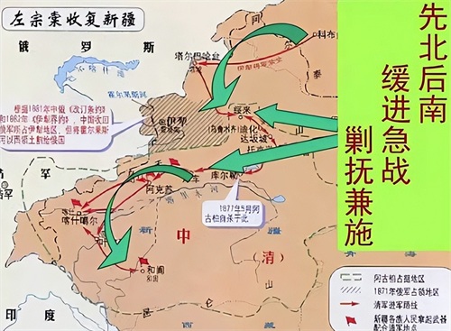 一切准备就绪后,左宗棠率领大军以“先北后南”的策略进军新疆。他的目标是先占领乌鲁木齐,夺回新疆,然后再与沙俄交涉,迫使其交出伊犁地区。