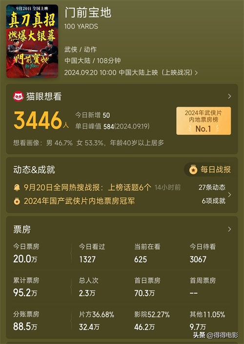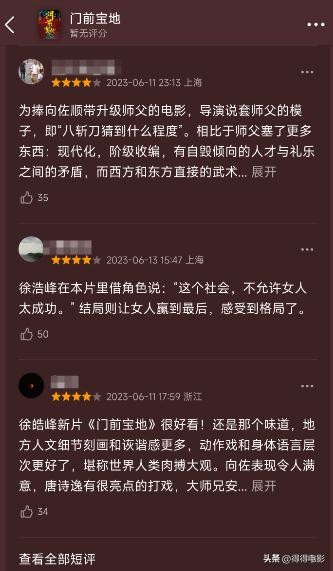 比起暴死的票房,口碑却逆势上扬,《门前宝地》的评论区几乎都是动作、武侠迷的肯定。