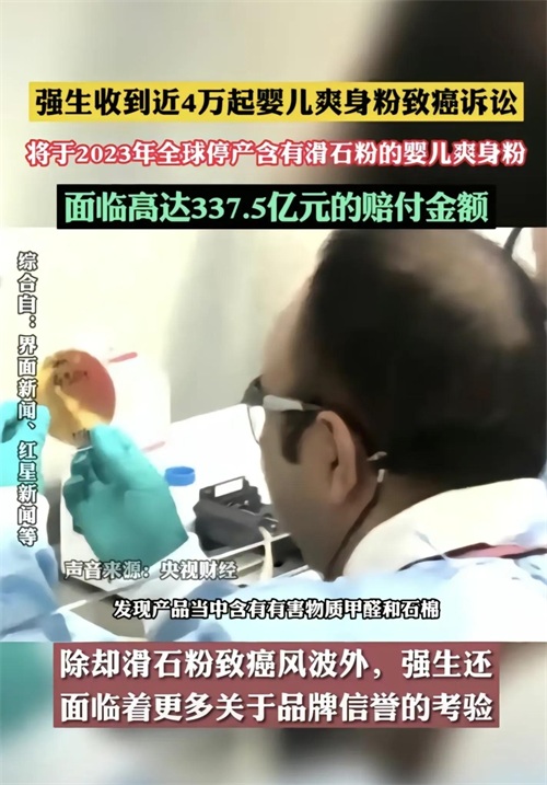 强生爽身粉致癌事件是一个历经多年的法律诉讼案件。自2012年以来,强生公司已多次因滑石粉产品(包括婴儿爽身粉)被指含有致癌物石棉而面临巨额赔偿。据报道,强生公司曾面临约3.8万起来自消费者的诉讼。2018年,美国密苏里州的一个法院确认了22名女性针对强生爽身粉致癌的指控,并判处强生公司赔偿46.9亿美元。尽管此案的影响巨大,但强生并不完全认同这一结果,并在近年来不断提起上诉。