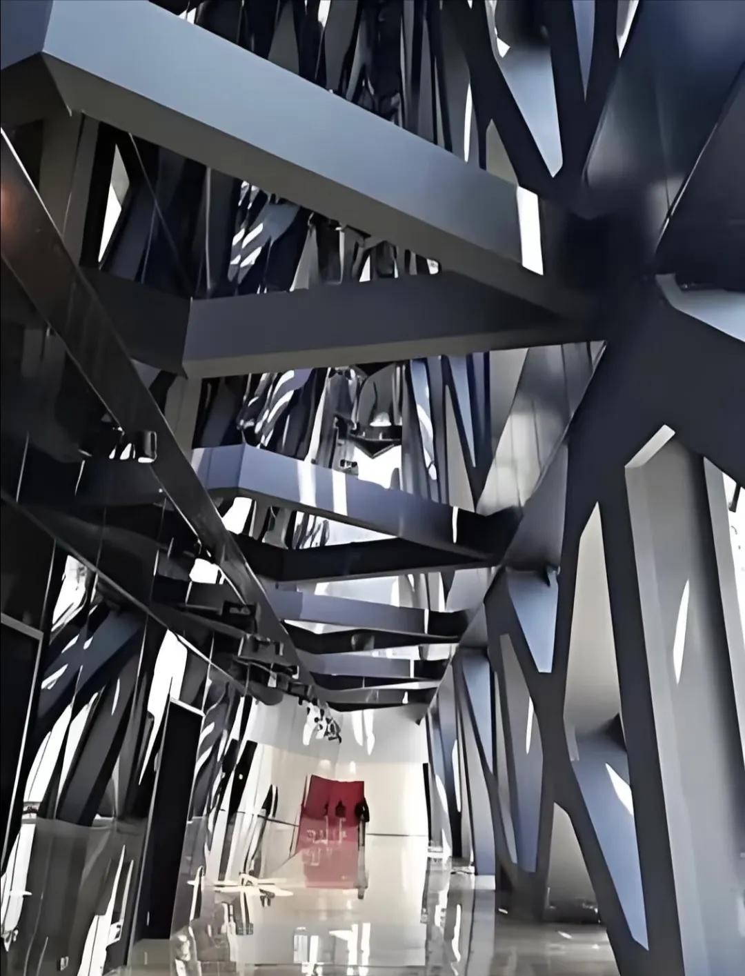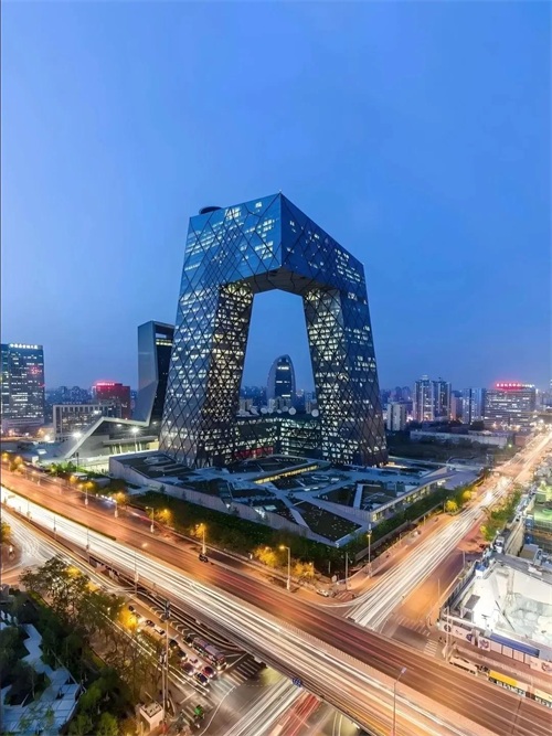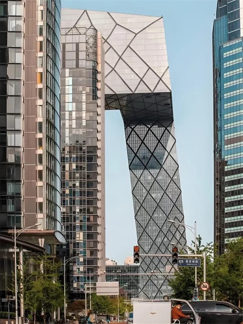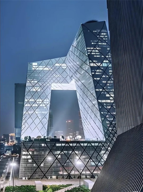 - 材料特殊:主体结构采用不规则菱形渔网状金属脚手架,表面是不规则几何形状的玻璃幕墙,玻璃采用特种材料烧制,具有良好的采光、反射和遮蔽日晒的效果。