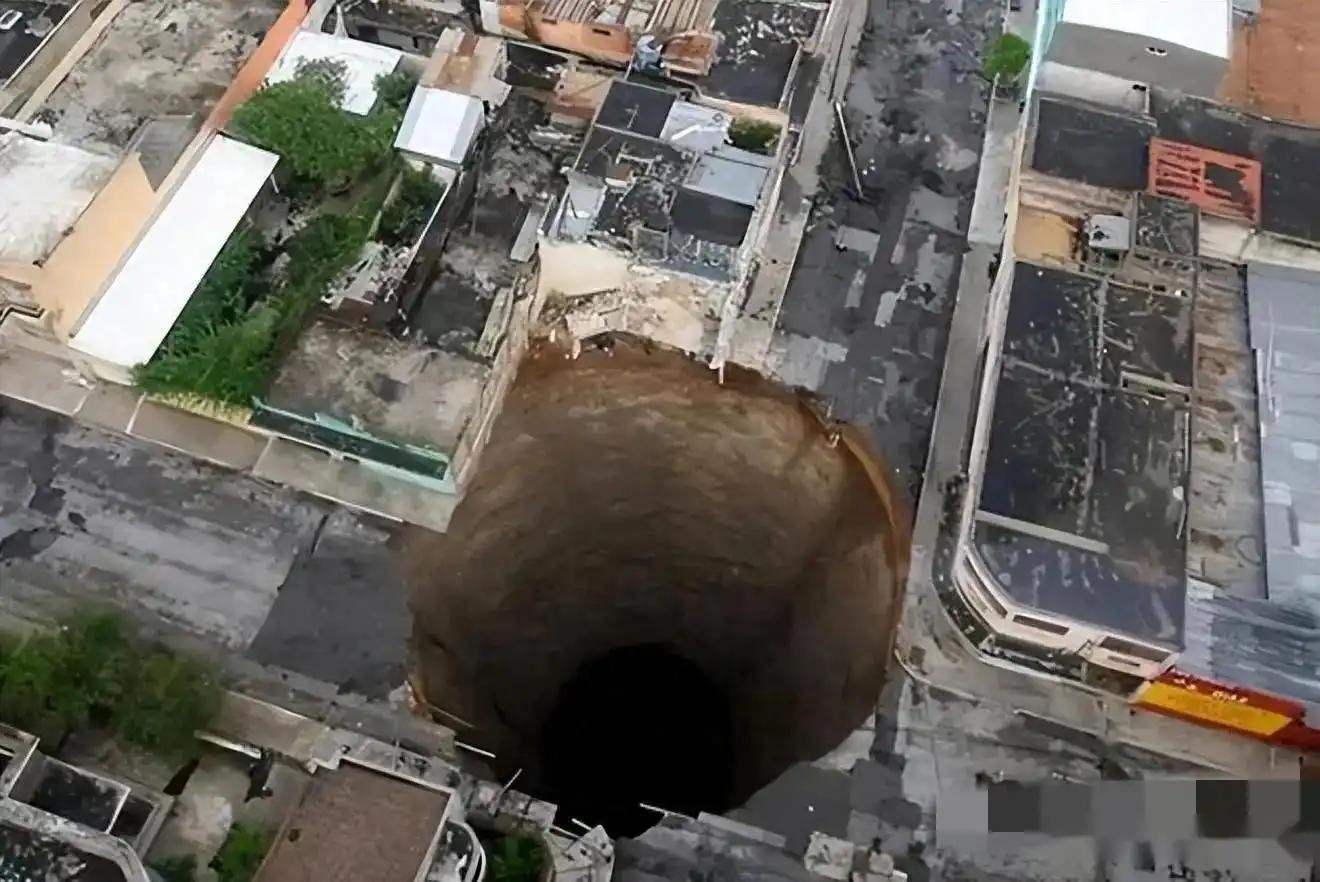 这张照片之所以令人毛骨悚然,是因为巨型天坑的存在本身就给人一种强烈的压迫感,它的出现仿佛打破了大地的平衡,让人产生了一种不安的预感。而且,天坑的深度无法估量,给人一种无尽的恐惧,仿佛它是通往地狱的入口,让人不敢靠近半步。
