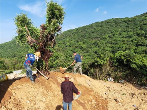 ▲ 修路、植树、在为被盗采而裸露的山体上修饰书法作品,提醒旅游者爱护环境。