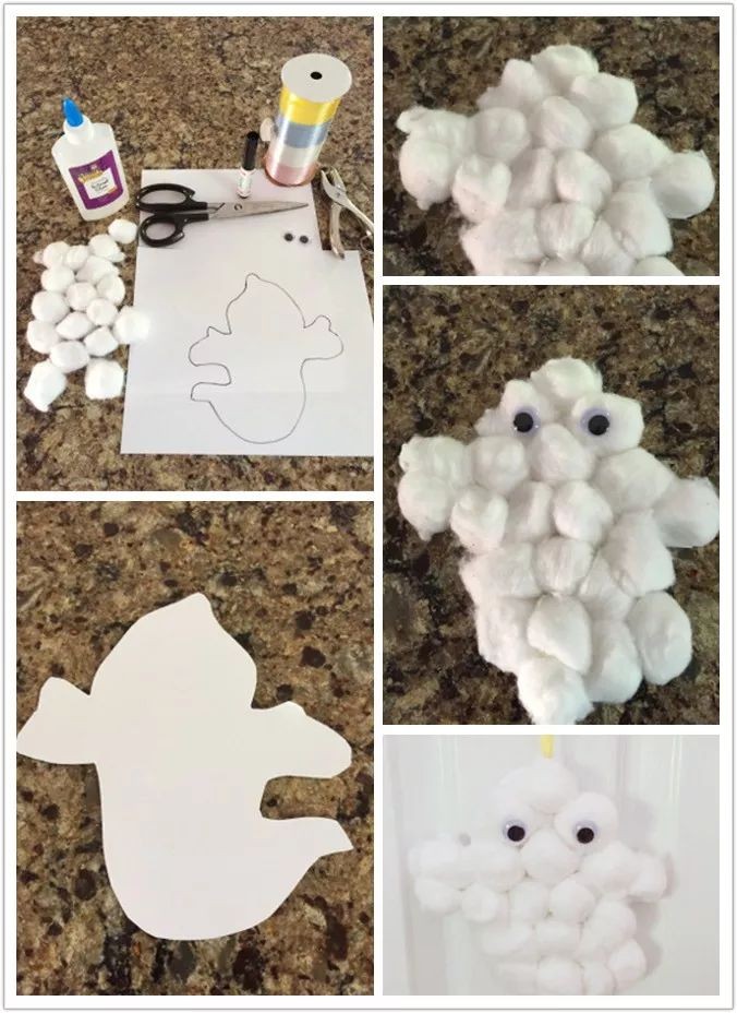 2.Glue cotton balls to fill in ghost.