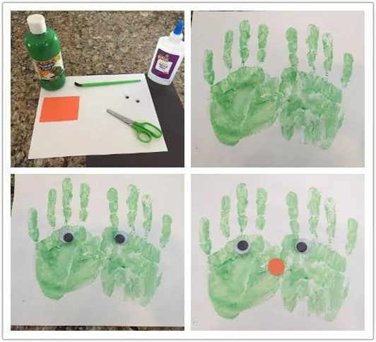 这也是一个适合低龄宝贝的万圣节手工。用一些绿色颜料,让宝贝体验用手作画,他们一定会非常喜欢。