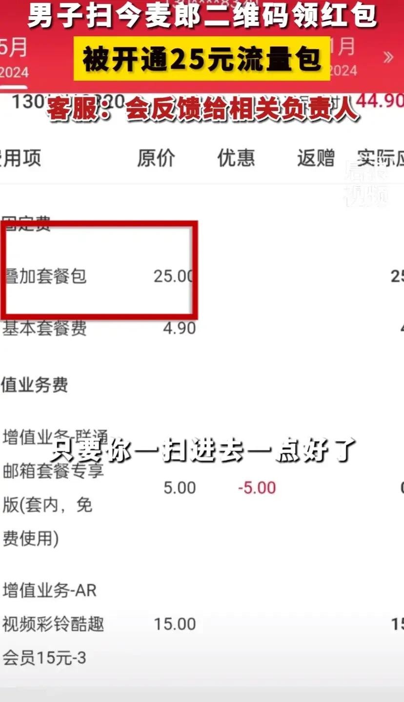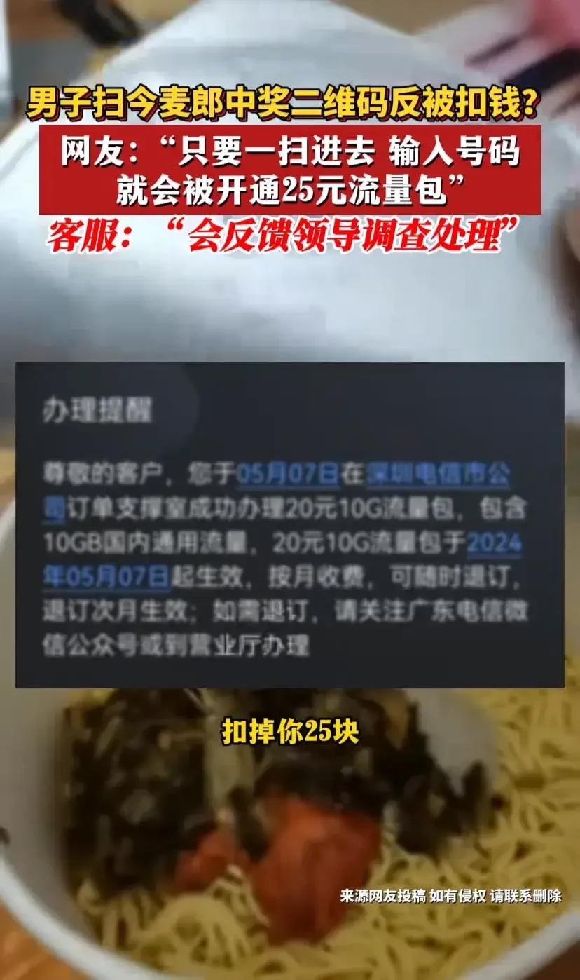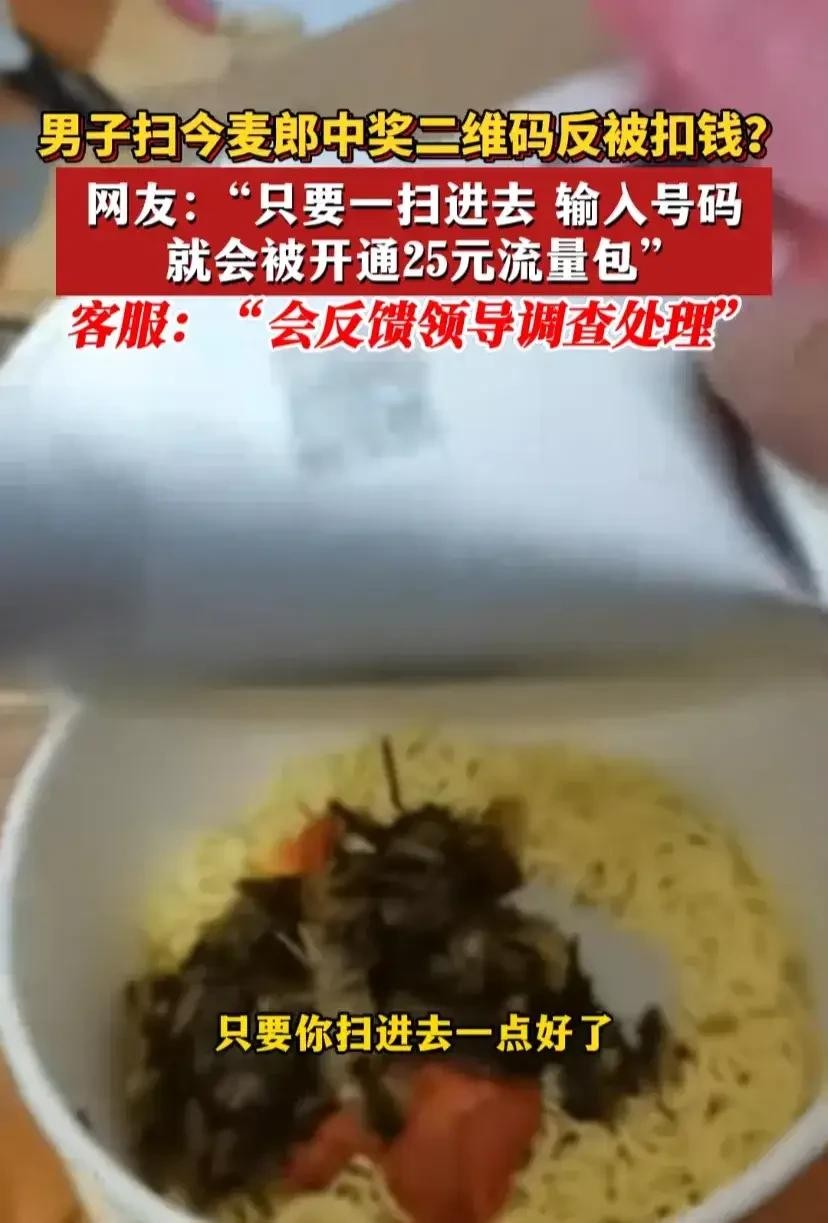 一个普通男子在购买今麦郎方便面时,因为包装上的二维码和“扫码有惊喜,百分百中奖!”的承诺而陷入了一个消费陷阱。在扫码并填写手机号码及验证码后,他发现自己的手机被扣除了25元,并且被开通了一个名为“叠加套餐”的不明业务。在尝试取消这一业务并寻求客服帮助时,他遭遇了推卸责任的态度。这个事件揭示了消费者在面对诱惑和陷阱时的脆弱性,以及企业在消费者权益保护方面的责任。