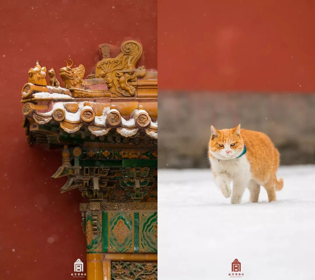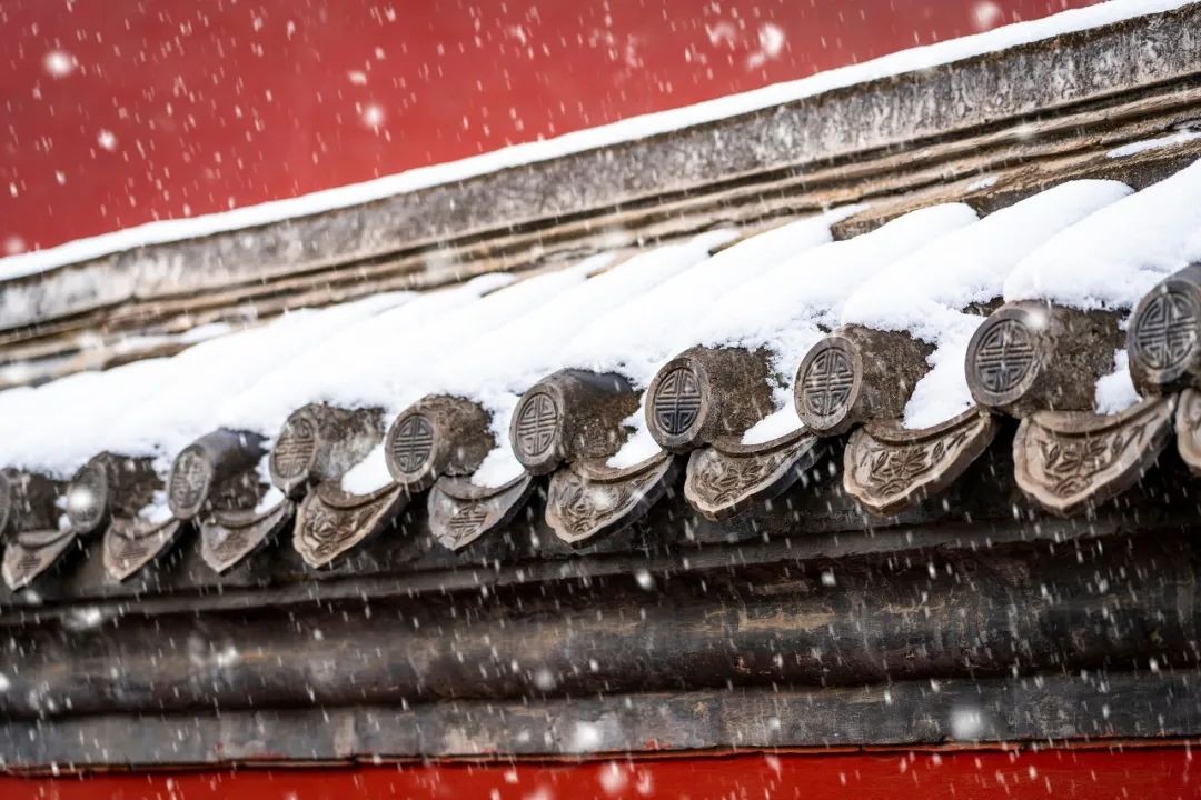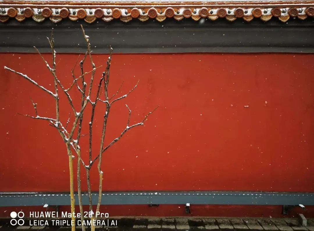 以色彩浓重的景物(墙面、水面)作为背景,更能衬托出积雪的洁白和意境 ▼