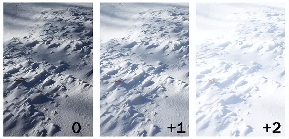 将曝光补偿(EV)提高1-2档,让画面更明亮,就能拍出雪的洁白质感 ▼