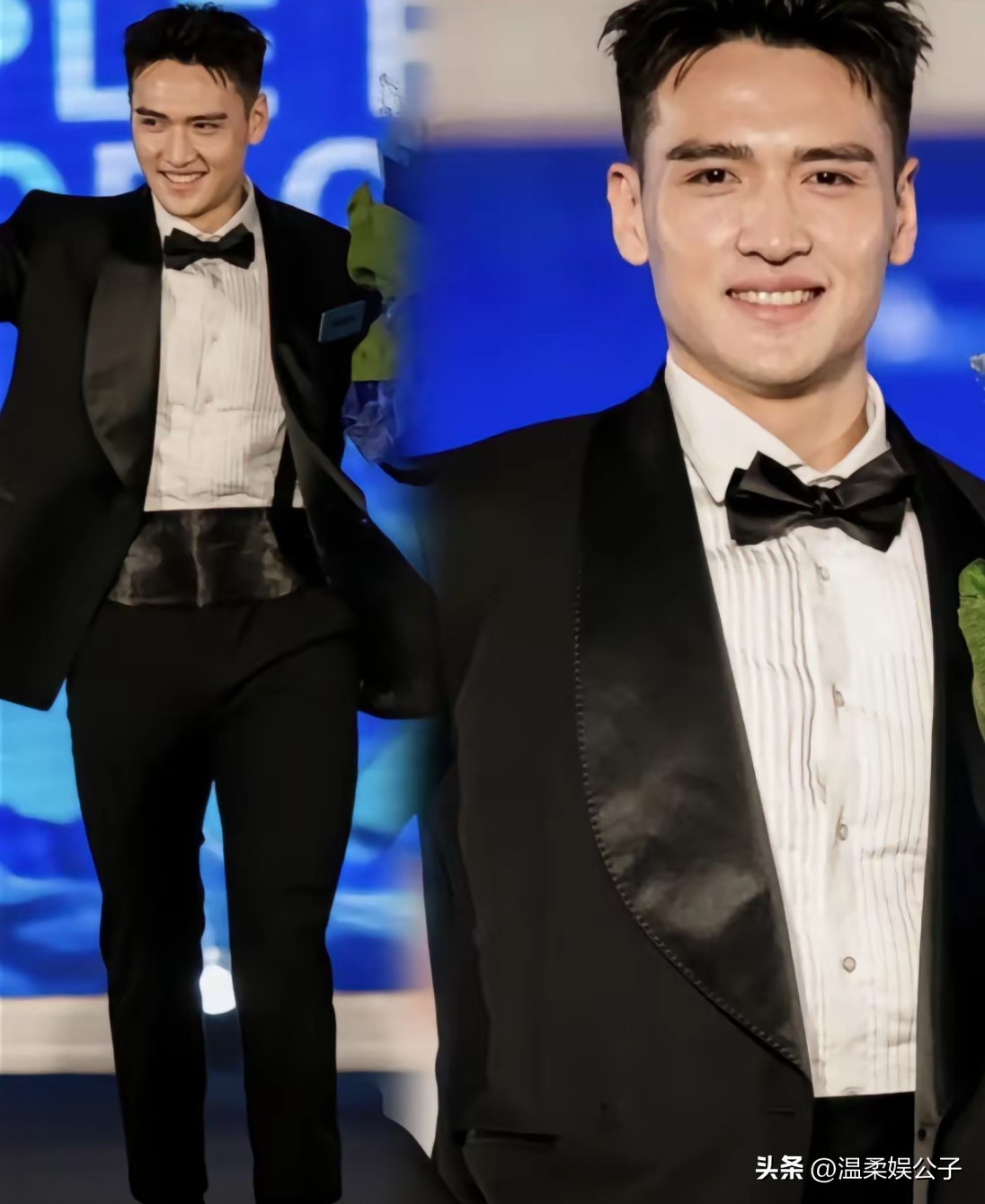 台下的他,显得更加阳光,充满了活力与朝气,对着镜头打招呼,自信、帅气,让人移不开眼睛。