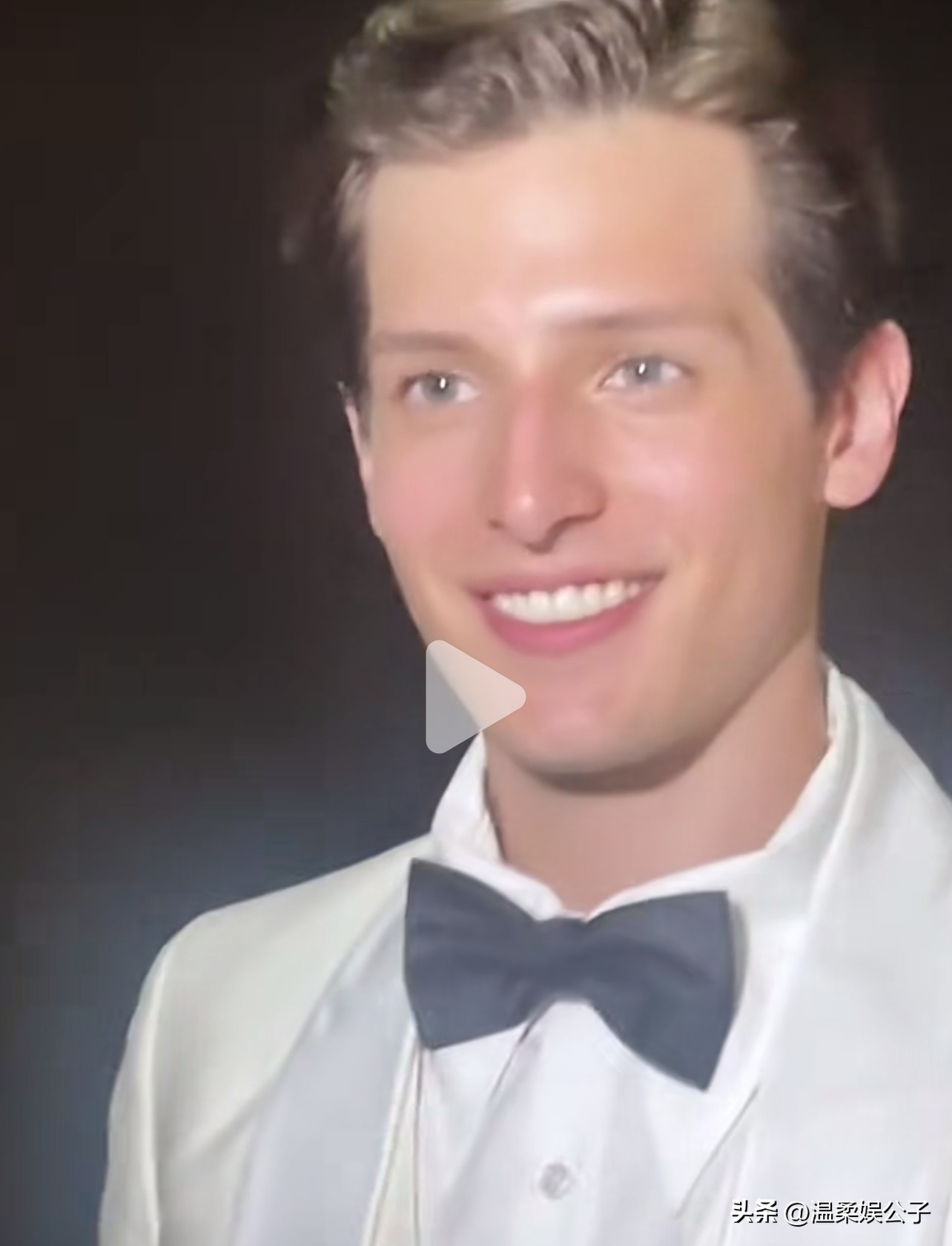 其如雕塑般精致的五官,在光影的映衬下显得格外立体抢眼,眉弓高、鼻子秀廷,梳着油头却不粉面,整体气质特别端正,那纯净的眼神,温和的笑容,绝对的初恋王子脸。