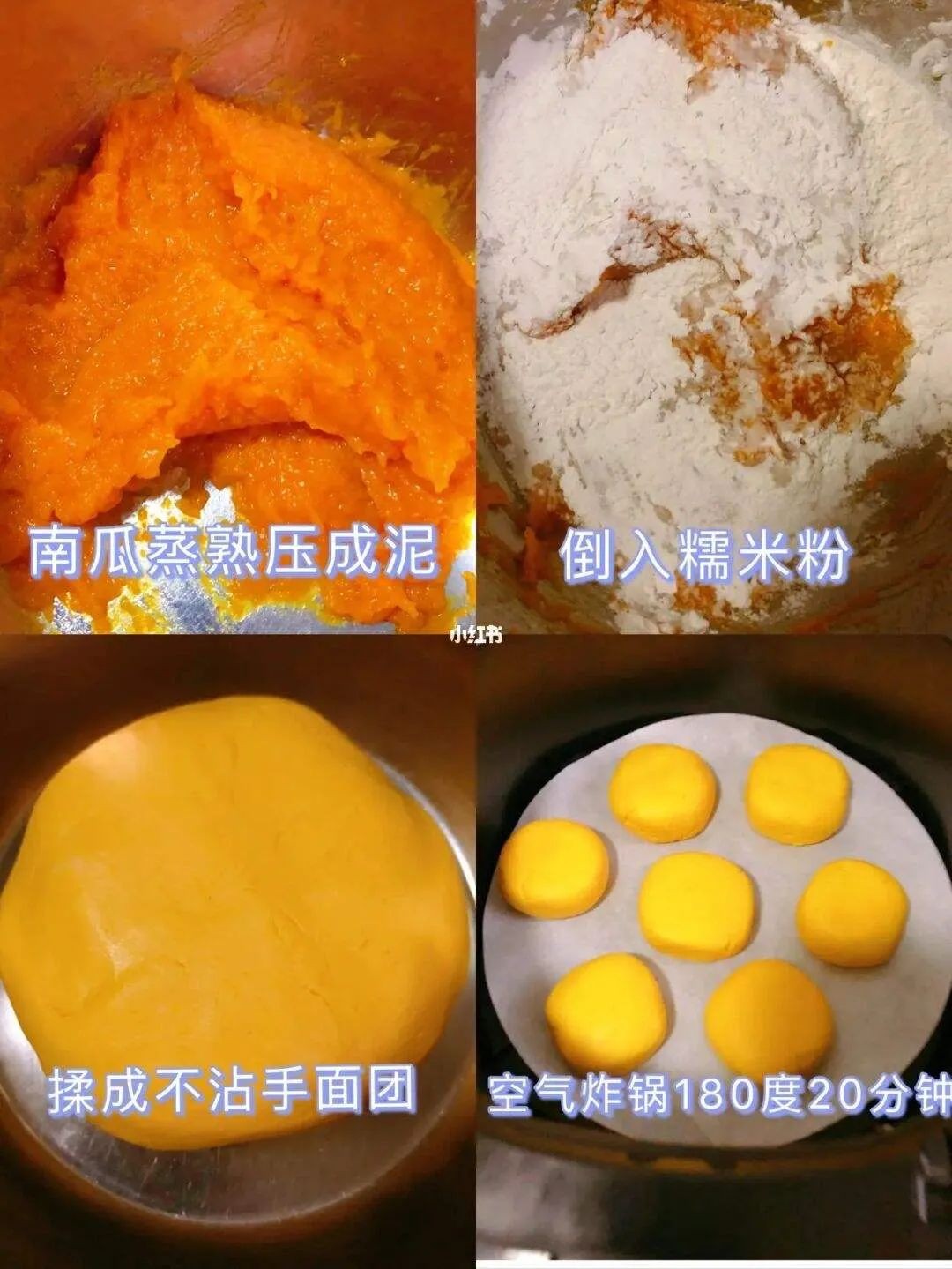 南瓜切块,放入锅中蒸熟,蒸熟后捣成泥。捣成泥的南瓜中加入糖、糯米粉,搅拌揉成团,然后捏成自己喜欢的形状。将切好的南瓜团放入烤盘中,170度烘烤20分钟即可。