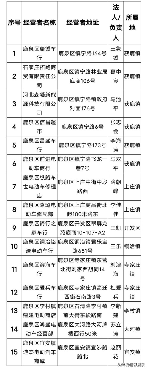 附电动自行车“带牌销售”网点名称