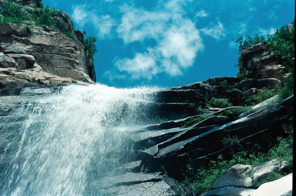 十瀑峡位于白石山风景区。穿行于山石之间,十瀑连叠不断,瀑上有潭,潭泄成瀑,瀑布水花飞溅。如银河倒挂,声宏如雷。干旱时,水流细,显的秀气诱人。;丰水期,银帘高悬,景色诱人。